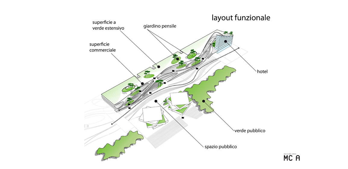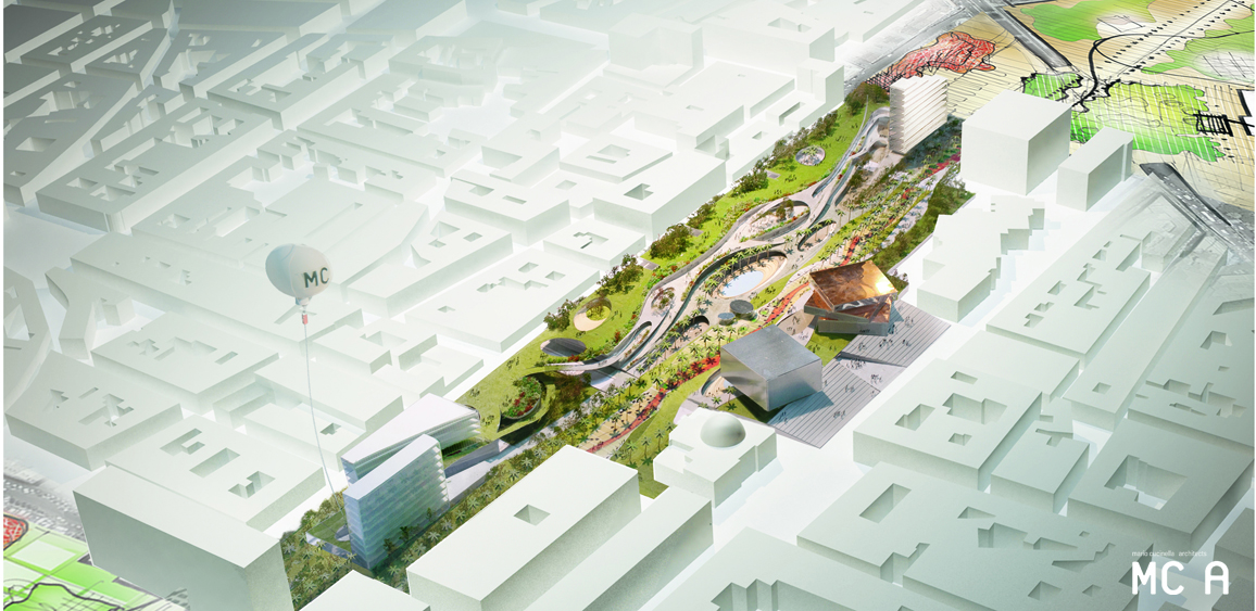 Il progetto, prevede la creazione di un ampio boulevard pedonale, un corridoio alberato che ricalcando il tracciato della metropolitana in costruzione al di sotto dell’area di progetto, ne articola la struttura. Attorno al boulevard, una serie di funzioni estremamente variegate animano i volumi di progetto, che compongono un articolato sistema di logge e terrazze senza soluzione di continuità con lo spazio pubblico. Edifici e boulevard si fondono in un’ unico grande giardino, pensato per rigenerare il tessuto urbano al suo intorno con la qualità dei suoi spazi collettivi.