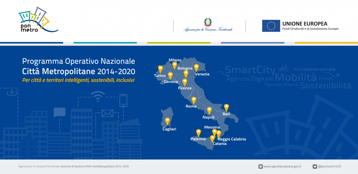 The Operative Program Metropolitan Cities 2014-2020 (PON Metro) is the national operative program dedicated to urban sustainable development that, in line with the urban European Agenda and the Deal of Amsterdam, tries to realise integrated action in the italian metropolitan territories, and to help the definition of a national urban agenda. Unique example in the panorama of the european programming of cohesion policies, the PON Metro receive the challenge of making a strategy for the growth and occupation of Europa 2020, that include also the investment of at least 5% of the European resources comign from the European Fund for the Regional Development in urban development program, which deputize the management to the citizen Athorities, under the coordination of the Agency for Territorial Cohesion, which has the role of Management Authority.