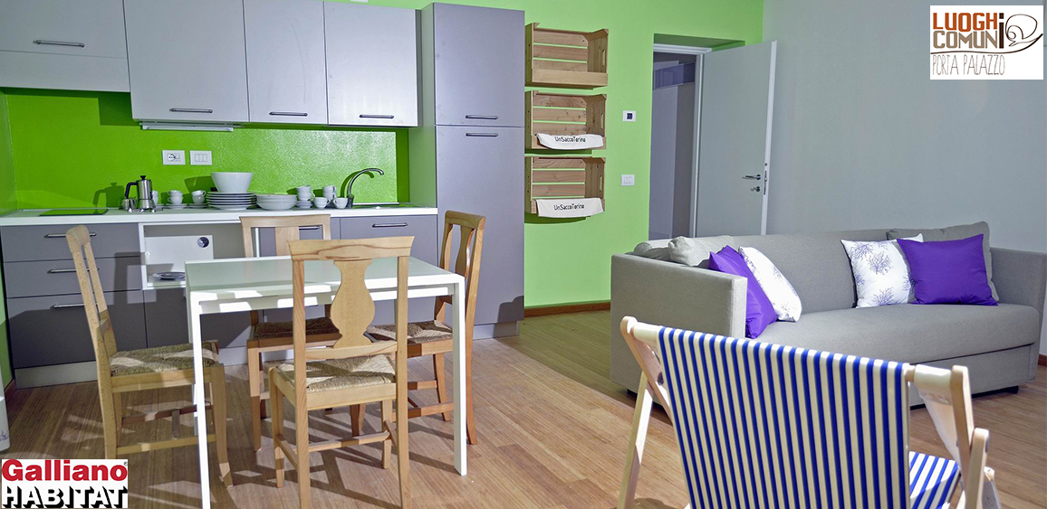 Le Residenze Temporanee (RT) di social housing, Luoghi Comuni Porta Palazzo e San Salvario, realizzate dal Programma Housing in quartieri centrali della città di Torino, sono “veri e propri laboratori di progettazione innovativa per le buone pratiche dell’architettura”, frutto di una continua attività di co-progettazione. Ai fini della sostenibilità e del comfort degli abitanti è stata simulata l’applicazione di alcuni strumenti di valutazione ambientale ed energetica tra i più utilizzati: la Life Cycle Assessment, applicata all’elemento tecnico cappotto esterno, utile all’individuazione dell’impatto ambientale della costruzione e della fase d’uso dell’edificio, il Protocollo Itaca e il Protocollo LEED per la verifica della sostenibilità energetico/ambientale. Questi strumenti si sono inoltre dimostrati utili nella scelta dei materiali e delle tecnologie impiantistiche. Tra le diverse tecnologie utilizzate vi sono: l’isolamento a cappotto con materiali eco sostenibili (pannelli in fibre di legno pressate), i pannelli radianti per la climatizzazione, l’impianto fotovoltaico e il solare termico. Per i rivestimenti sono stati utilizzati: il parquet in bambù, l’eco gres porcellanato, alcuni materiali esistenti riciclati quali il ferro delle cancellate e dei balconi e le pietre di rivestimento. Inoltre sono stati utilizzati i listelli Woodn per il frangisole di Porta Palazzo, realizzati con materiali lignei. Anche gli arredi sono per la maggior parte realizzati in materiali naturali e sostenibili e ricadenti nel Progetto Refuse Lab di Galliano Habitat che coniuga la trasformazione degli arredi, l’estetica e la funzionalità con la sfida della riabilitazione psicosociale. Infine, con l’obiettivo di sensibilizzare i residenti alla sostenibilità, è stato redatto il “Manuale del Residente” nel quale sono illustrate le 10 eco regole che danno indicazioni sul buon utilizzo degli spazi, da considerare come buone pratiche anche per il futuro in contesti esterni alla Residenza.