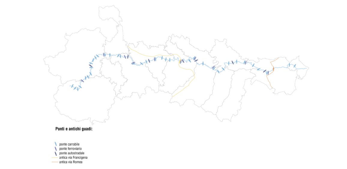 • il sistema storico-artistico e insediativo: include la richezza del patrimonio presente sul fiume o nelle sue vicinanze. In tale sistema sono compresi anche i caratteri tipologici degli edifici rurali suddivisi secondo le aree geografiche regionali;