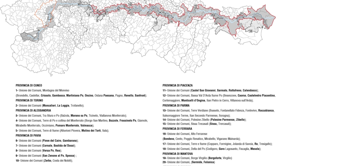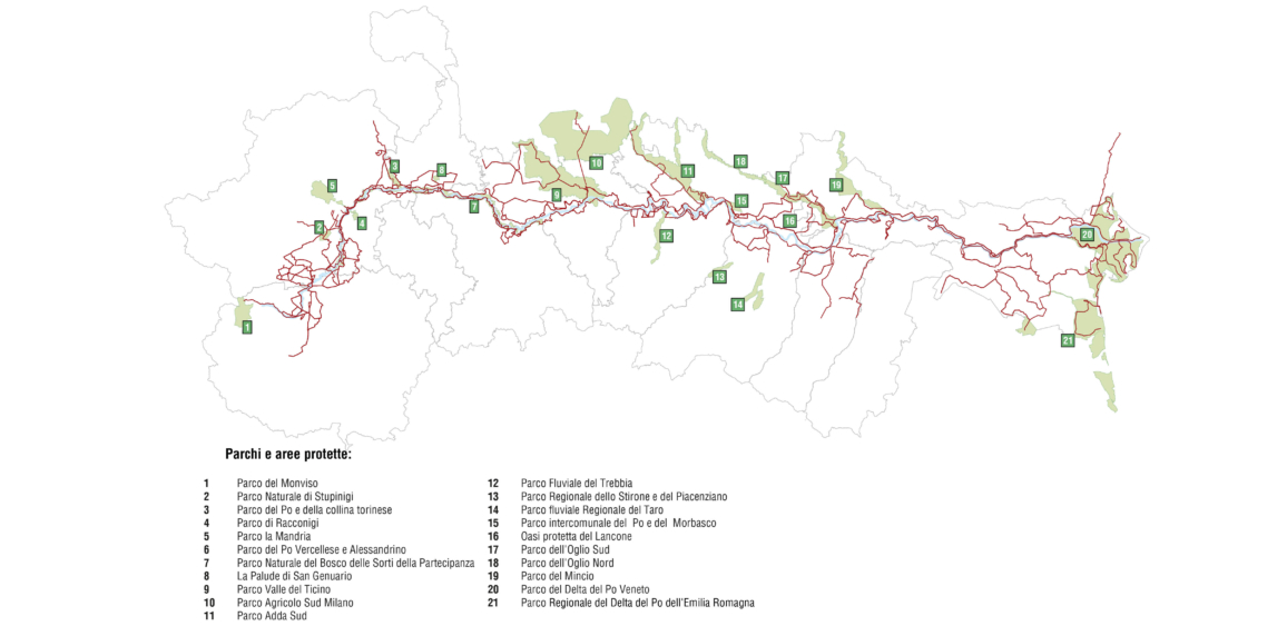 Per affrontare il tema del grande fiume italiano è stata definita una rete territoriale di sistemi che comprendono i diversi aspetti relativi al fiume e correlati tra loro.