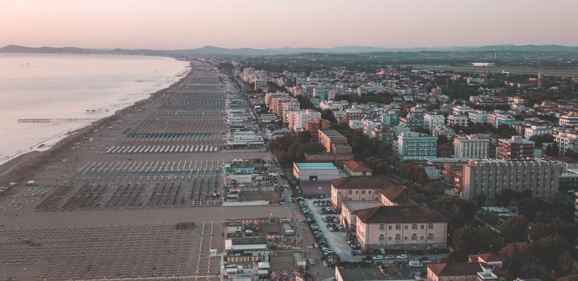 La riviera romagnola va dalla foce del fiume Reno al promontorio di Gabicce Monte, attraversando le province di Ravenna, Forlì-Cesena e Rimini. La città adriatica, lungo la costa romagnola, si è formata a partire dagli anni ’50 con l’espansione di Rimini e di Milano Marittima con la creazione dei lidi romagnoli, andando a costituire una spiaggia continua che si estende per 130 chilometri. Il litorale è caratterizzato a nord dal paesaggio del Delta del Po, a sud dalla conurbazione adriatica romagnola per 70 chilometri, mentre la struttura urbana è formata dalla Statale 16 che corre parallela alla costa e dalla linea ferroviaria, barriera per passare dalla strada al mare. A queste si è aggiunta l’autostrada A 14, che funge anche da circonvallazione per collegare i Comuni della conurbazione.