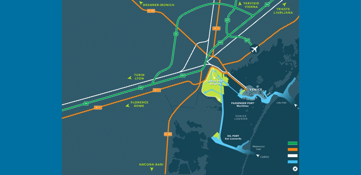 The Port of Venice represents one of the most important port and logistics systems in the Adriatic Sea. Due to its strategic position, it represents an increasing strong link in the logistics chain between Central and Eastern Europe on one side as well as the East Mediterranean, the Middle East and the Far East on the other side.