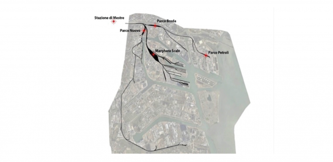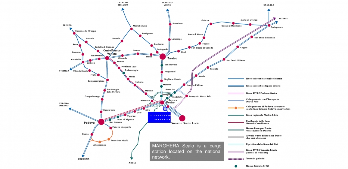 – national freight station of Venezia Marghera Scalo (with its exchange track and reception and departure siding);