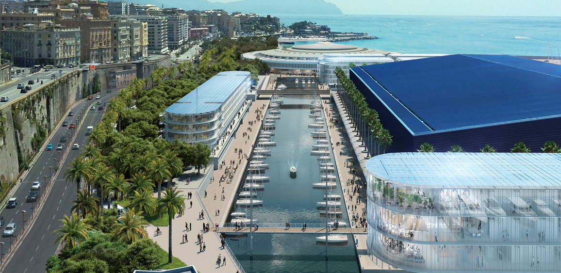 With the Waterfront of the East, Genoa takes a new step towards urban regeneration. The intervention will be completed in 2023, will cover 115,000 square meters and will regenerate the area of the former Fair through the water (Port-Canal), the green (“Parco della Foce”) and the “urban beach”.