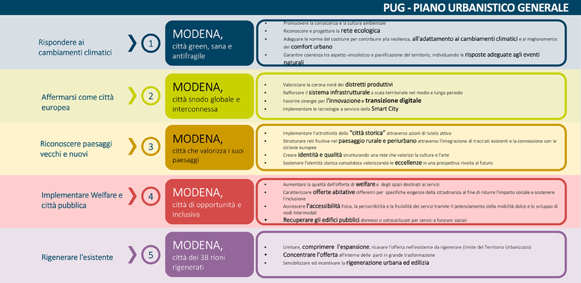For Modena, and not only, the theme of territorial resilience is now more central than ever: ecological and digital transition, urban and environmental quality and local strategies to support the health and welfare of citizens, to address the critical issues of the area, represent the starting points for developing the vision and the new plan.