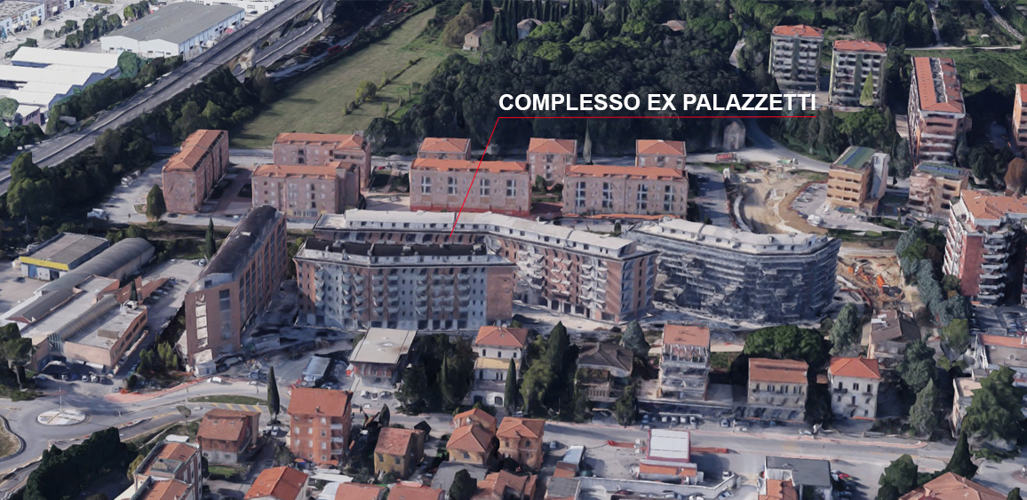 Ponte san Giovanni è un insediamento sorto sulle rive del fiume Tevere a circa 7 km dal centro di Perugia, che in poco più di cinquanta anni raggiunge i 20.000 abitanti diventando uno dei più popolosi quartieri della città. Lo sviluppo demografico del quartiere, cresciuto in un ambito territoriale pianeggiante compreso tra il fiume Tevere, la linea ferroviaria e una viabilità di interesse nazionale come la E45, è andato di pari passo con lo sviluppo delle attività industriali, commerciali e, più recentemente dei servizi, accompagnato da una rilevante attività edilizia sia di iniziativa privata che pubblica, piuttosto caotica. Nel corso degli anni 2000 il quartiere ha conosciuto il fallimento di importanti progetti di ristrutturazione di ex siti industriali dismessi che ne hanno sfregiato il tessuto urbano. La presenza di grandi immobili incompiuti nel pieno del tessuto urbano del quartiere, tra cui il maggiore è quello del complesso ex Palazzetti, sono una ferita aperta che occorre rimarginare per arrestare il degrado e migliorare la vivibilità dell’abitato di Ponte San Giovanni.