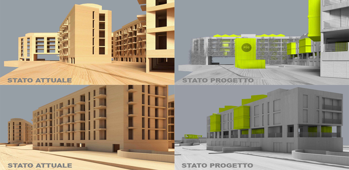 Recupero di un complesso edilizio in stato di abbandono denominato ex Palazzetti. Si prevede l’acquisto dell’intero complesso immobiliare da parte di Ater (soggetto attuatore dell’intervento) ed il recupero dello stesso con l’obiettivo di creare un quartiere modello per l’alta qualità dell’abitare, creando un mix di alloggi di Edilizia residenziale sociale e a canone concordato, spazi commerciali, servizi socio-culturali di quartiere. Un quartiere Sostenibile, Sociale, Smart, Sperimentale, Salubre, che sono nella contemporaneità sinonimo di elevata qualità abitativa: da qui le ragioni del motto “PS5G”.