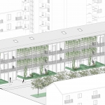 A questo asse si interseca il Decumano della rinnovata via Berthet che recupera la forma residenziale essendo sgravata dal traffico spostato nella nuova arteria a sud. A completare gli interventi, un grande parco verde attrezzato, un’autorimessa e un marciapiede oggi inesistente lungo la via di accesso al quartiere.