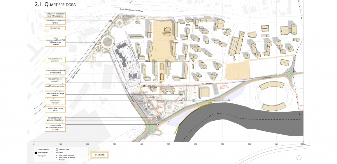 Il quartiere Dora è nato negli anni ’60 in un’area con importanti barriere fisiche sul perimetro: ferrovia, strada statale, acciaieria e fiume Dora, che hanno sempre condizionato la connessione con il resto della città.