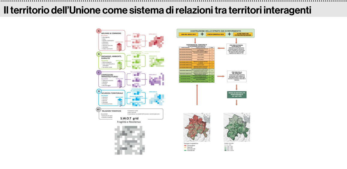Sostenibilità dello sviluppo, innovazione e qualità di vita sono punti cardine attorno ai quali i cinque Comuni hanno deciso di articolare in maniera unitaria un percorso che, valorizzando le specificità e le risorse di ciascun Comune, possa indirizzare verso una crescita armonica, inclusiva e ambientalmente sostenibile, nell’ambito di una visione condivisa di territorio. Un contesto consapevole delle proprie risorse, in grado di dialogare con l’esterno – in particolare verso la Città Metropolitana – e di rafforzare le reti di integrazione e cooperazione interne, nella consapevolezza che le diverse tematiche poste dalla transizione contemporanea possono trovare risposta solo superando i confini dei singoli comuni e contribuendo alla formazione di una visione condivisa di sviluppo sostenibile alla scala del territorio vasto.