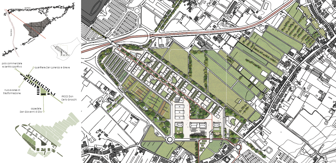 Il Comune di Firenze è promotore del piano particolareggiato di iniziativa pubblica che interessa l’ampia area dismessa dell’ex Caserma Lupi di Toscana, finalizzato a realizzare il più grande intervento di trasformazione urbana della città dagli anni ’60 ad oggi. Il lungo e virtuoso percorso per arrivare al progetto ha visto la realizzazione sull’area di un ampio percorso partecipativo (http://open.toscana.it/web/noncasemacitta2.0/home) e di un concorso internazionale di idee (https://concorsolupiditoscana.comune.fi.it/it. Sulla base del progetto vincitore l’Amministrazione ha infine predisposto e approvato il piano. Lo sviluppo del progetto è promosso attraverso forme di partnership con soggetti privati la cui missione è coerente con l’obiettivo di realizzare un insediamento a prevalente destinazione residenziale dedicato all’housing sociale (500 alloggi), improntato sulla sostenibilità nelle sue varie declinazioni ambientale, ecologica, sociale. Aspetto sostanziale del progetto è la centralità e qualità dello spazio pubblico, articolato in varie forme: un ampio asse centrale urbano esclusivamente ciclo-pedonale, elemento portante dello sviluppo complessivo dell’insediamento, il verde di cintura, il parco esteso, gli orti urbani. La viabilità e le aree per parcheggio sono confinate ai margini e non interferiscono con il sistema ciclo-pedonale e con gli spazi pubblici.