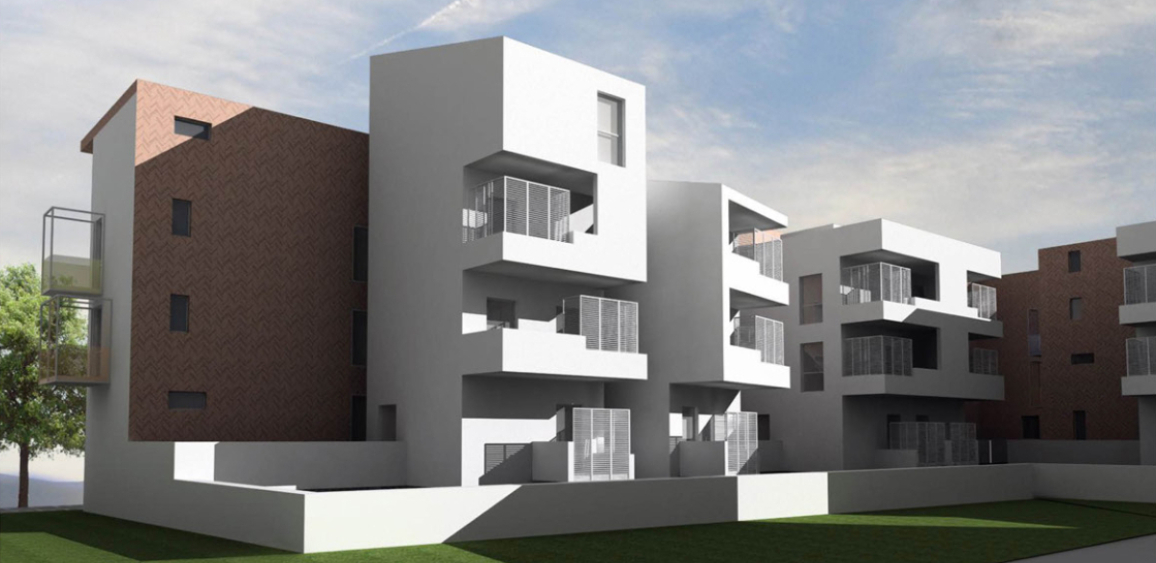 - Area immobiliare di via Saffi: intervento di riqualificazione creando un edificio moderno e multifunzionale con 20 appartamenti per famiglie, spazi comuni integrati e uffici pubblici.