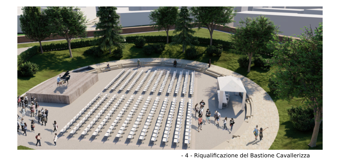 - Bastione Cavallerizza: punto terminale di Via dei Barberi, Il progetto ha riguardato l’allestimento di una piattaforma per eventi.