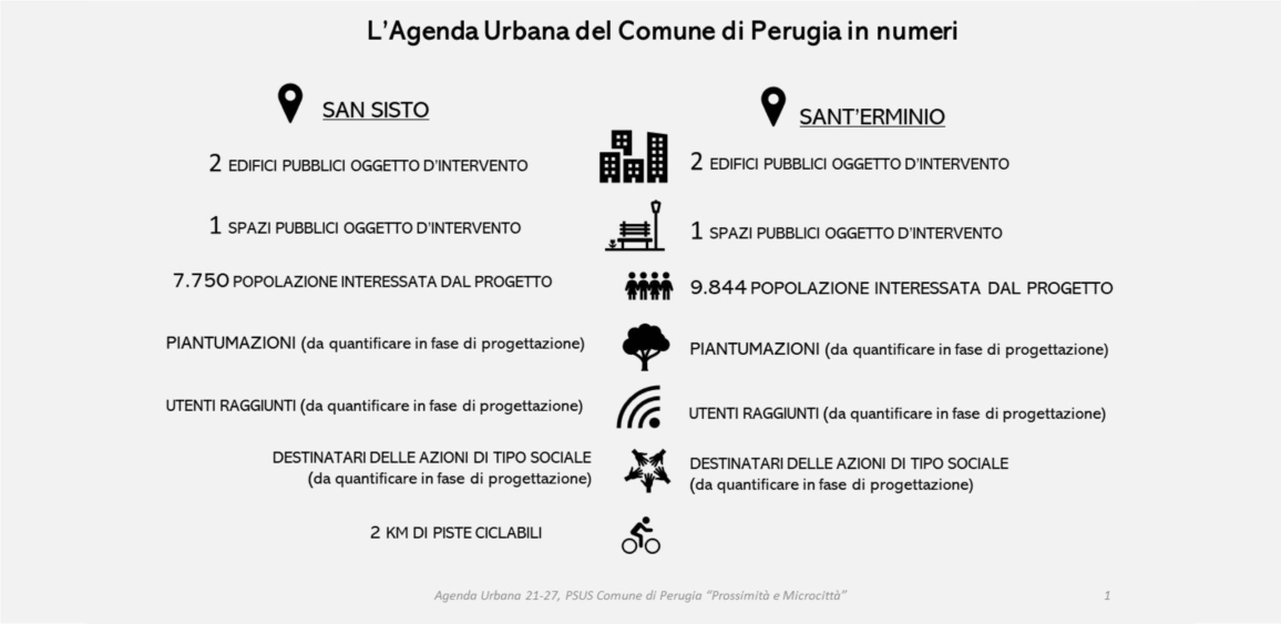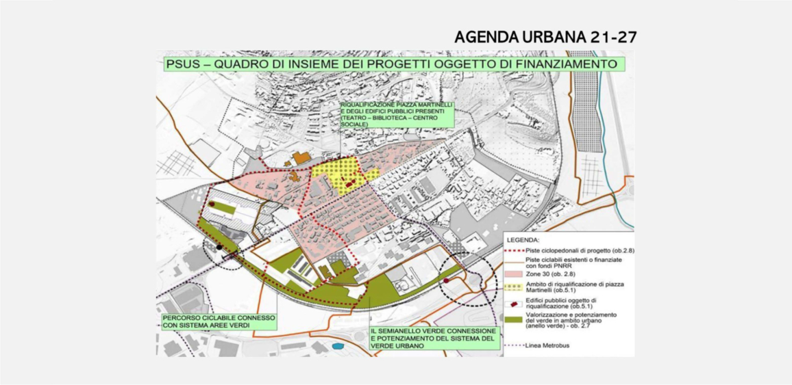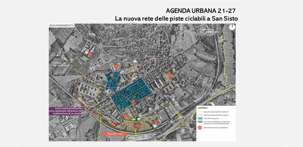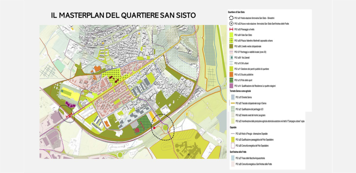 The DST, with the related masterplan for the San Sisto district, was the fundamental reference for developing the Sustainable Urban Development Programme (PSUS) requested by the Umbria Region for the use of the ERDF PR and ESF+ PR resources allocated to the Municipality of Perugia for the implementation of the so-called «Urban Agenda 21-27».