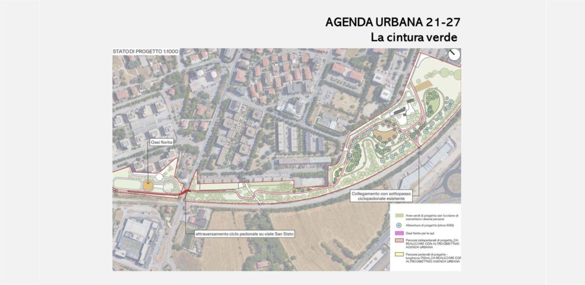 The PSUS “Proximity and Microcities” identifies a total of fifteen integrated and sustainable interventions with the aim of regenerating two important neighborhoods-San Sisto and Sant’Erminio-improving their livability and increasing the well-being of the local community. Redevelopment and enhancement works are planned for public spaces and structures that constitute gathering places for residents (square, sports fields, library, association center); interventions on existing and newly planned green areas, integrated with investments for sustainable mobility (cycle paths, 30 zones) and innovative digital services in continuity with the Urban Agenda 14-20 (ICT solutions, applications for administration). Together, material interventions and actions and projects in the social field are able to improve the usability of urban spaces and ensure quality and inclusive spaces for inhabitants.