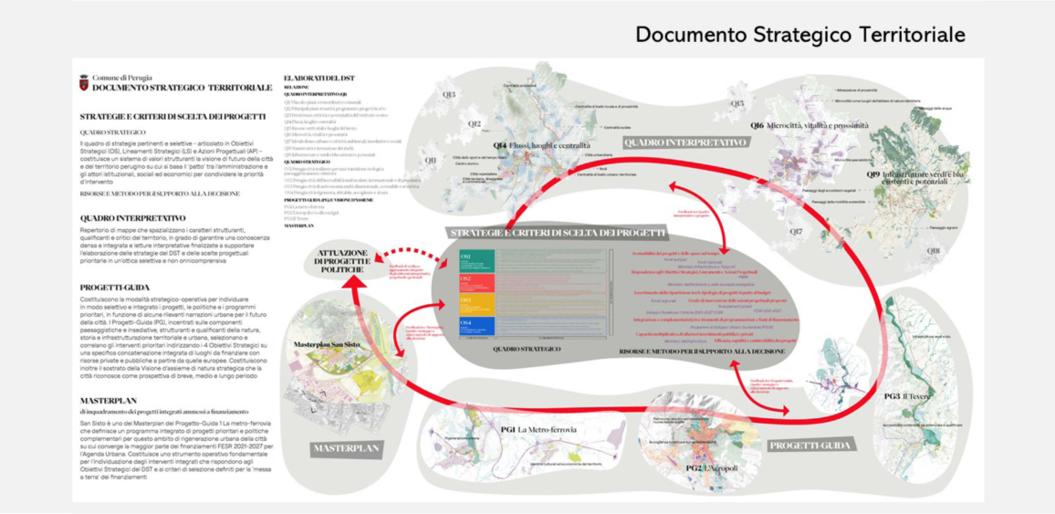 The DST was born precisely from the need to build a shared and organic mid-term vision for the city of Perugia. Starting from the identification of 4 strategic objectives, the DST is expressed in 24 strategic guidelines and a set of project actions, some of which are developed in guide projects and master plans developed at the neighborhood scale.