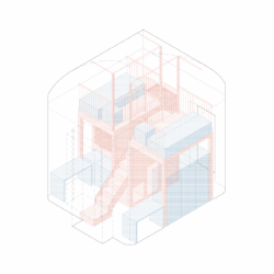 Il padiglione presenta un impianto planimetrico a “C” con due piani fuori terra e uno seminterrato e il suo involucro in pietra leccese risulta regolare nella geometria e nel ritmo di pieni e vuoti che inquadra le aperture.